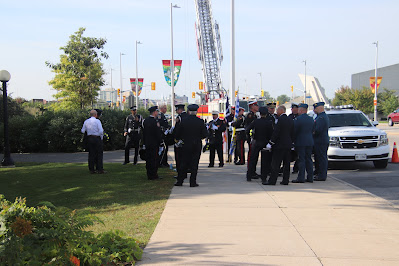 The Canadian Firefighters Memorial Ceremony took place on Sunday, September 11, 2022, at the site of the Canadian Firefighters Memorial in Ottawa. After two years of virtual ceremonies only, participation of those involved in the fire service in Canada and their families overfilled the memorial site. This photographic record lacks a number of significant features of the ceremony. I hope it does convey the essence and spirit of the event. Except for the first and last images all the pictures are shown in the order they were taken.